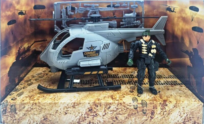Katonai készlet helikopterrel, katonával és kiegészítőkkel.