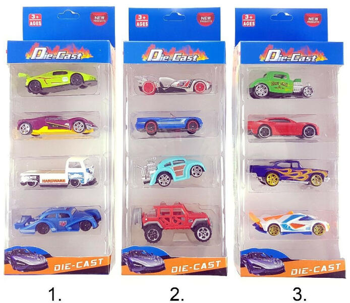 Versenyautó szett. A csomagban különböző összeállításban találhatod meg a kis autókat. Gyűjtsd össze mindegyiket és máris kezdődhet a futam. Autók mérete: 7 cm. Műanyagból készült. 3 éves kor felett ajánljuk. 4 darabos versenyautó szett. Versenyezz és győzz! Hatalmas futamokat lehet játszani ezekkel a sportkocsikkal.