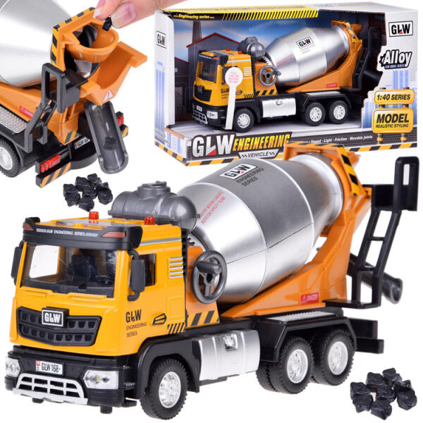 Minden kisfiú szeret autókkal játszani. Ez a betonkeverő igazi kihívás a kis építők számára! Nagyszerű szórakozást nyújt. Ez az egyedülálló betonkeverő lehetővé teszi a kis építők számára, hogy valódi építkezési légkört teremtsenek! Az autó nagyon valósághűen készült, a legapróbb részletekre is odafigyelve. Az autó hang- és fényeffektusokkal van felszerel