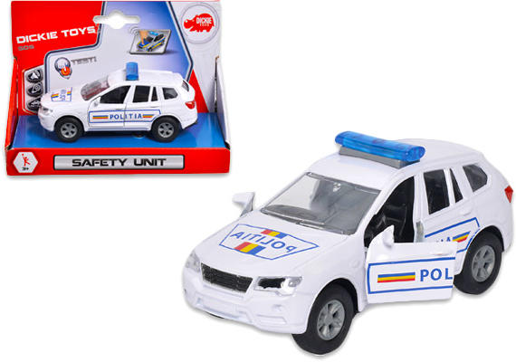 Valaki bajba került és a te segítségedre van szükség! Száguldj a helyszínre a Dickie rendőrautóval és segíts a bajbajutottaknak! Út közben kapcsold be a fény- és hangjelzést! Nyomd le a rendőrautó tetejét és az rögtön el is indul! A játék működéséhez 3 db LR41 elemre van szükség, amit a csomagolás tartalmaz. A rendőrautó hossza: 14 cm.