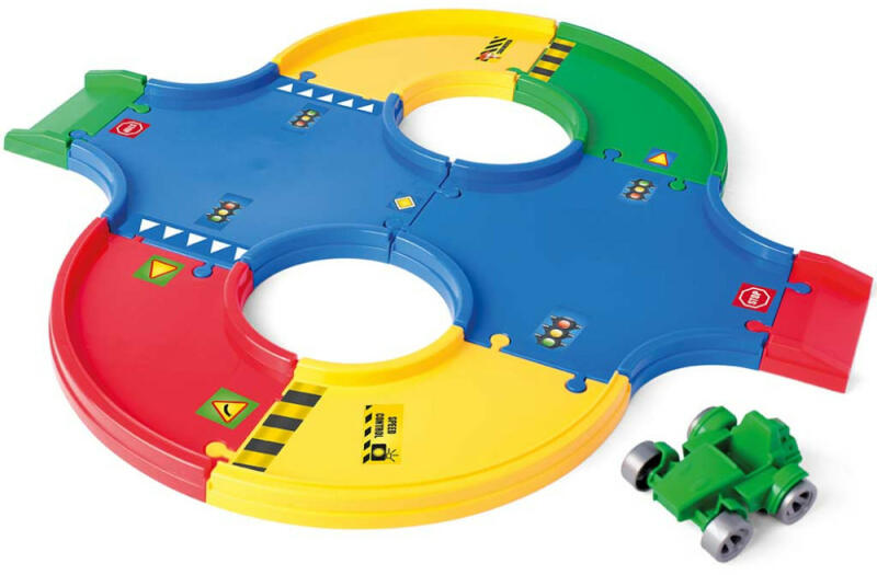 A Wader Play Tracks Basic alap keresztutas pályaszettel a gyerekek négy keréken gördülő kalandra indulhatnak. A pályaelemek könnyedén illeszkednek egymáshoz, a különböző közlekedéssel kapcsolatos matricák (pl. jelzőlámpa, STOP, sebességkorlátozás) pedig még izgalmasabbá teszik az 1,8 méter hosszú pályát. A játék strapabíró műanyagból készült, így a picik sokái