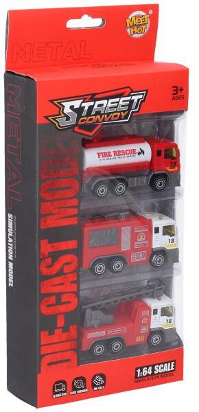 Tűzoltó autók, fém, műanyag, 3 db. Mérete 8,5 cm. Fém kabin. Szabad kerekek.