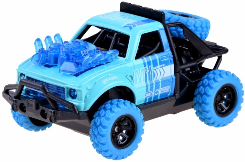 MIKRO TRADING - 26cm terepjáró autó lendkerékkel, dobozban, kék színben
