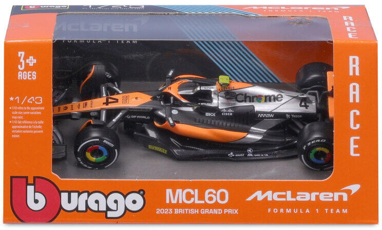 Fedezd fel a Bburago 1/43 méretarányú F1 versenyautóját, amely a McLaren MCL60-at ábrázolja, Lando Noris 4-es rajtszámú autóját. Ez a részletesen kidolgozott modell tökéletes választás minden Forma-1 rajongó és gyűjtő számára. A Bburago híres a minő...