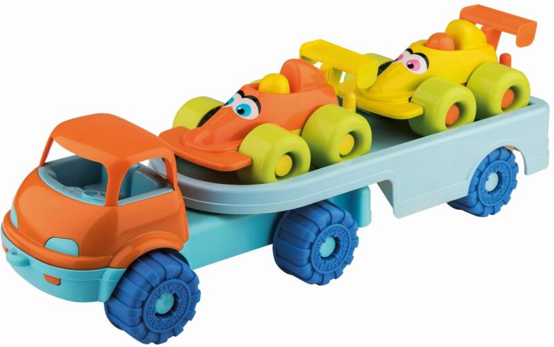 Vicces autók utánfutón - A versenyautók egy 3 részes vicces járműkészlet, kiváló minőségű műanyagból Olaszországban. A termék lekerekített formája miatt kisebb gyermekek számára is alkalmas. Az autó hossza félpótkocsival együtt 53 cm, a vicces autó 18 cm. A teljes készlet méretei: 53 x 18 x 16 (HxSzxM) Súly: 1,11 kg. Ajánlott életkor 12 hónapos kortól.