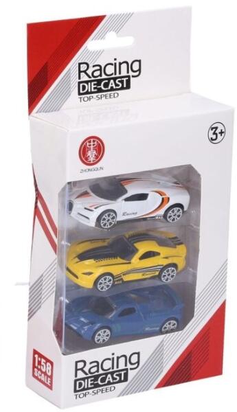 Egészítsd ki autógyűjteményedet ezzel a három tökéletes versenyzővel. Építs egy pályát, és tartsd a versenyt a szobádban. Melyikük ér elsőként célba? A csomag 3 db 7cm-es autót tartalmaz. Ajánlott életkor: 3 éves kortól