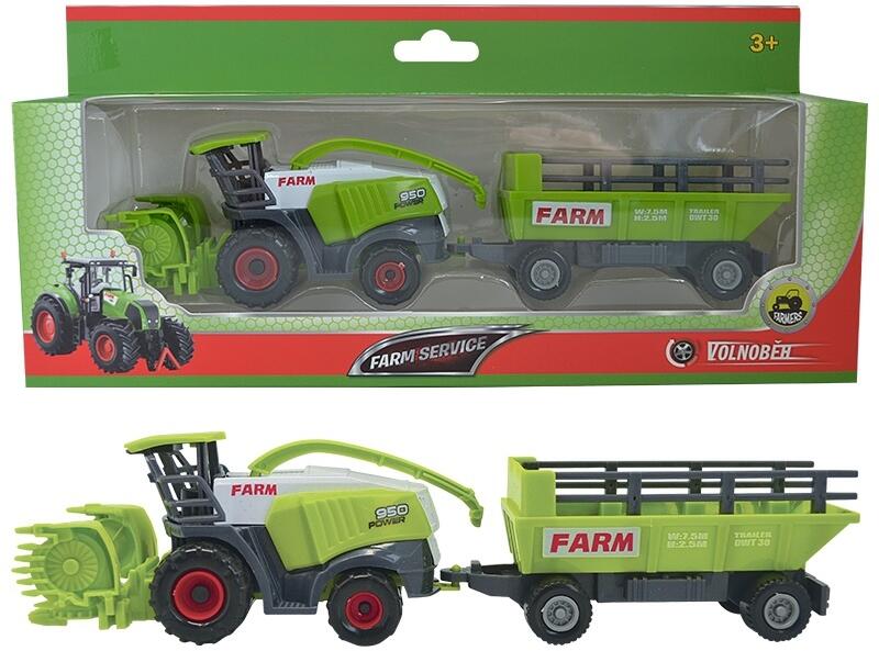A pótkocsis zöld kombájn a Farm Service termékcsalád 1:50 méretarányú modelljei közé tartozik. Ezzel a modellel a gyerekek változatossá tehetik kiállításukat, játékukat, melyben többet tudnak meg a mezőgazdasági technológia lehetőségeiről és funkcionalitásáról. Összetétel és funkcionalitás: üresjárat az utánfutó kivehető Anyaga: műanyag A betakarítógép hoss