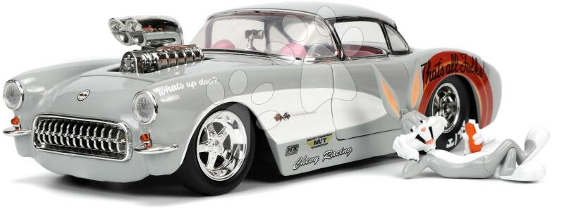 Kisautó Chevrolet Corvette 1957 a népszerű Looney Tunes animációs sorozat alapján lelkes gyűjtőknek és gyerekeknek 8 éves kortól ajánlott. A 19 cm-es fém játékautó valósághű modellje minden kisfiút és kislányt elbűvöl, a csomagban Bugs Bunny fémfigurája is megtalálható. A jogdíjjal védett játékautó szürke változatban nyitható ajtókkal, kofferrel és levehető m