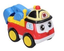 Építőipari autó egy arccal a lendkeréken. Az autó méretei 10,5 x 6,5 x 9 cm.