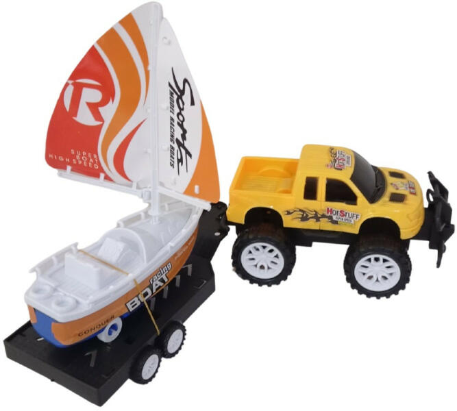 2 részes játékautó szett a legkisebb kempingezők részére. Tartalma: lakóautó és csónakszállító utánfutó Hossz: kb. 36 cm Fontos! A lenyelhető apró alkatrészek miatt nem adható 3 éves kor alatti gyermeknek!