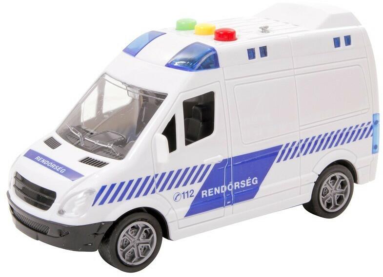 Lendkerekes magyar rendőrautó, amely különböző vészhelyzeti hangjeleket tud kiadni. Műanyag autó, amelyet a lendkerék használatával lehet felgyorsítani. Az autón magyar nyelvű felírat és a valódi magyar rendőrségi színek vannak. Lendkerekes magyar rendőrautó 3 gombbal A jármű tetején lévő három gomb megnyomásával különböző szírénázó hangokat lehet kiadni.