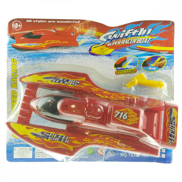 A terméket 3 éves kor feletti gyermekeknek ajánljuk! A verseny motorcsónak kiváló játék lehet bármely kisgyermeknek, ráadásul még akár a színben is választhatnak, hiszen piros és sárga színben egyaránt kapható ez a termék. A termék fizikai jellemzői: Mérete: 23 cm Anyaga: műanyag
