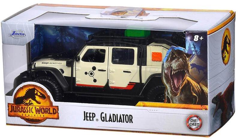 A Jurassic World - Jeep Gladiator játékautó a leghíresebb dinoszauruszos filmsorozat ikonikus járgánya, mellyel a sziget személyzete járja a parkot. A 18-as számú, logóval is ellátott, közvetlenül a filmből vett stílusjegyekkel rendelkező terepjáró szállította a látogatókat a parkba. A Jeep Gladiator játékautó részletesen kidolgozott, kiváló minőségű anyagokból ké