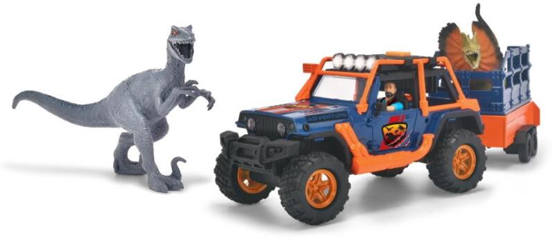 A Dickie Dínó parkőr játékszett el visszarepülhetsz a dinoszauruszok idejébe és segíthetsz az őrnek elszállítani őket egy védett területre. A készletben a funkciókkal teli jármű mellett egy nagyméretű, ketreces utánfutó , valamint két dinoszaurusz figura is található, amelyek a pótkocsin szállíthatók. A terepjáró a tetőn található gombbal aktiválható fény- és