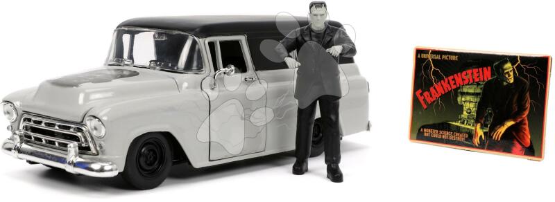 Kisautó Chevy Suburban 1957 igazán nagyszerű ajándék lelkes gyűjtőknek és gyerekeknek 8 éves kortól. A 20 cm-es fém játékautó valósághű modellje minden kisfiút és kislányt elbűvöl, a csomagban Frankenstein fémfigurája is megtalálható. A jogdíjjal védett játékautó szürke változatban nyitható ajtókkal és motorháztetővel van kialakítva. A kisautó precízen kido
