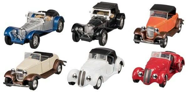 Die-cast fém lendkerekes oldtimer 3 db-os játék autó készlet "A" a következő modelleket tartalmazza (a képen szereplő felső sor): SS Jaguár 100, SS jaguár 100, Ford Roadster. Nyitható ajtókkal. Anyaga: fém Méret: 11,5 cm