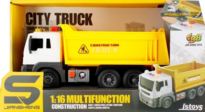 Építődömper nem hiányozhat egyetlen építkezésről sem. Az autó nyitható karosszériával, fény- és hangeffektusokkal rendelkezik - az indító motor hangja és a kürt.