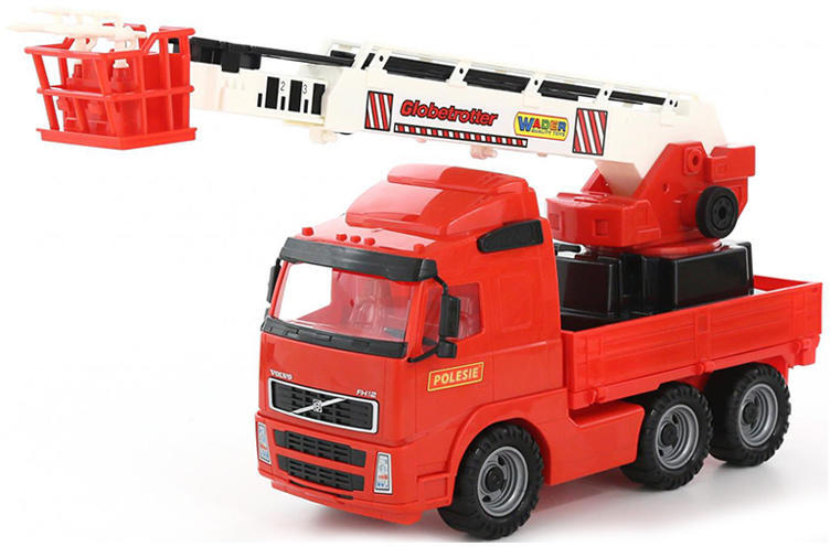 Volvo tűzoltóautó Polesie márkájú Volvo tűzoltóautó. Az autó platója lenyitható, daruja forgatható, a kosarat fel lehet emelni, a létráját ki lehet tolni. A kosár segítségével a felső emeleteken lévő embereket is ki lehet menteni és a tüzet is el tudja oltani gyermeked. Piros, fehér, szürke és fekete színkombinációban kapható. Mérete: 58,5x19,5x32,3 cm. Anyaga: mű