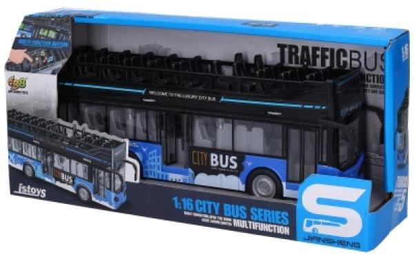 Városi busz fényekkel és hangokkal. Csomagolás mérete: 32 x 17 x 11 cm Tartalom: 1 db városi busz. Elemszükséglet: 3 x AG13 (tartozék).