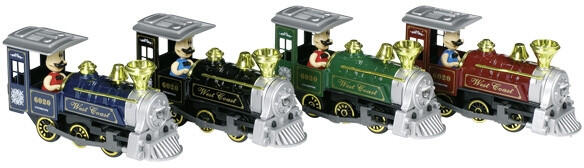 Die-cast fém lendkerekes játékmozdony, vonat hang és fényjátékkal, realisztikus kerékmeghajtással, mozgó vezetővel, nyitható ajtóval. Anyaga: fém Méret: 15 cm Az ár egy db-ra vonatkozik.