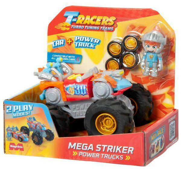 A T-Racer versenyeken sosem lehet tudni, milyen terepen zajlik majd a küzdelem, éppen ezért tökéletes választás ez az átalakítható Mega Striker szuperterepjáró. Ha nagy a sár és a hegyre kell felkaptatni, Monster üzemmódban minden akadályt legyőz ez a járgány, az aszfalton viszont sokkal gyorsabb egy versenyautó. Csak egy egyszerű kerékcsere és némi átépítés szüksége