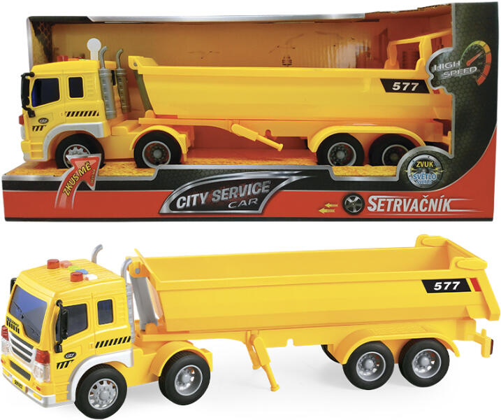 Nyerges vontató félpótkocsival fény- és hangfunkciók méretarány 1:16 Elem típusa - 3x LR44/AG13 gombelem (a termék tartalmazza) méretei 42x20x12 cm súlya 833 g 3+ életkor
