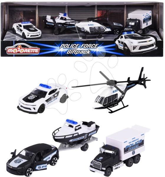 Rendőrjármű készlet ajándékcsomagolásban a francia Majorette márka műhelyéből egy igazán nagyszerű ajándék minden gyermek részére 3 éves kortól. Licenszelt fém kisautók nyitható részekkel és precízen kidolgozott részletekkel valódi járgányok alapján lettek megalkotva. Csodaszép gyűjtői dobozban a gyerkőcökre 4 fajta jármű vár , mégpedig egy klasszikus rendőr