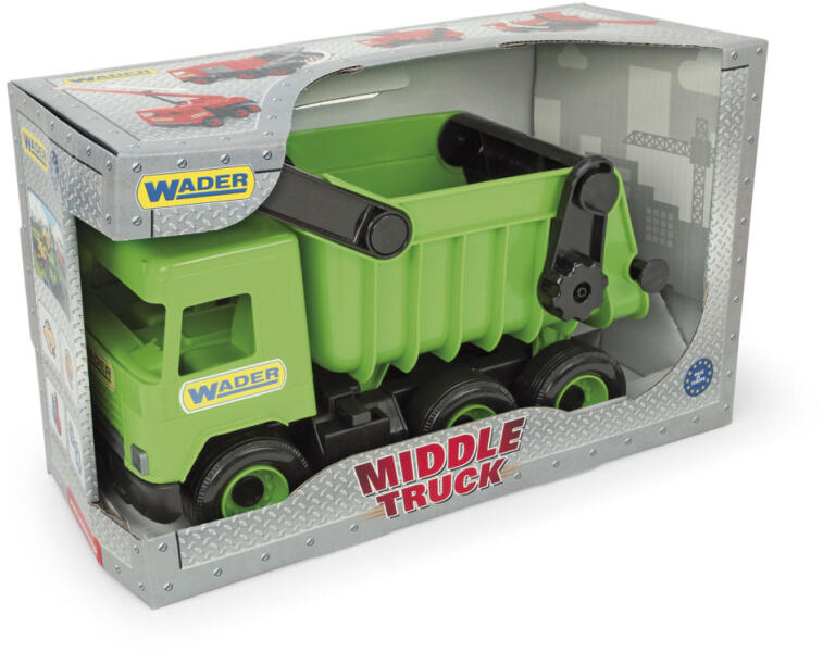 Te lehetsz a legmenőbb a Wader zöld teherautójával. Bárhol játszhatsz vele, legyél akár a homokozóban, a strandon, a kertben, vagy a lakásban. A billenős platónak köszönhetően rengeteg rakományt szállíthatsz vele, még a nehezeket is, hiszen az erős műanyagnak köszönhetően nagyon strapabíróájármű.