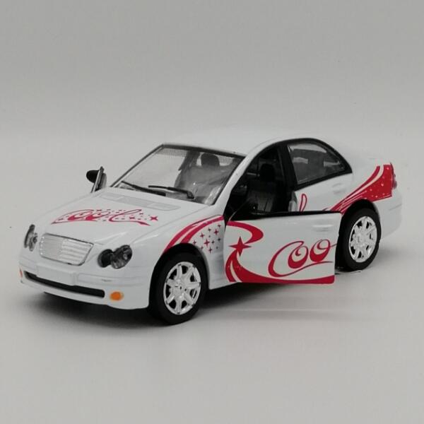 Fémből készült E-osztályú Mercedes-Benz autó, ami zenél is! Az autó nyitható ajtókkal készült. Az ajtó nyitásakor az autó hátulja világítani kezd, és elektronikus zenét játszik le. Az autó hátrahúzós meghajtással van felszerelve 3 darab LR44 gombelemmel működik, a csomagolás az elemeket tartalmazza. A mérete: 15 cm. Autó alapszíne: Piros, Fekete, Ezüst, Fehér, S