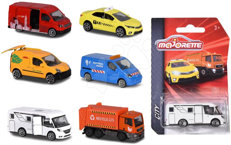 Városi kisautó City Vehicles a francia Majorette műhelyéből nagyszerű ajándék minden gyerkőc részére már 3 éves kortól, akik előszeretettel gyűjtögetnek mutatós autómodelleket. A licencelt MAN, Renault, Toyota és Volkswagen autómodell márkák mozgatható részekkel valósághű benyomást keltenek, kisfiúk és kislányok figyelmét egyaránt felkeltik. Választani 6 modell k