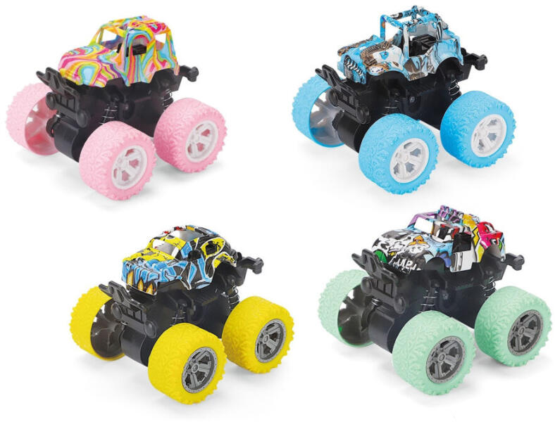 Terepjáró autó lendkeréken. Az autó méretei 8,5x8,3x7,5 cm. Festéket a készlet erejéig küldünk.