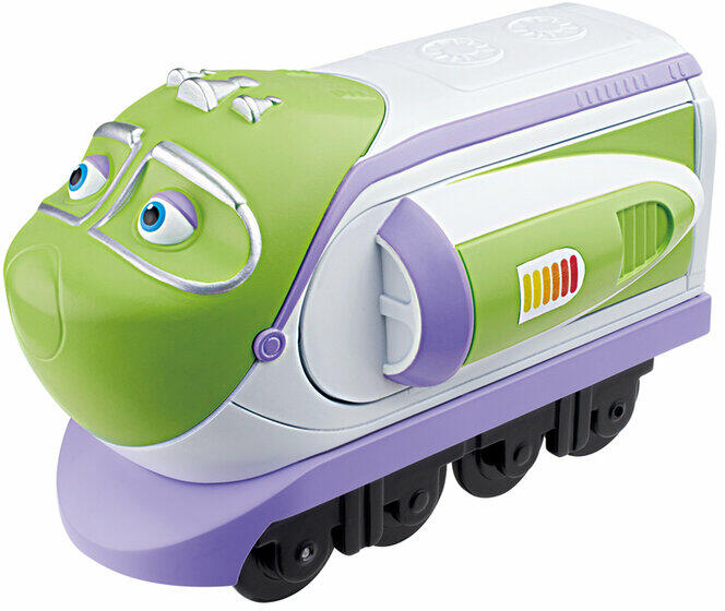 Transformációs funkciójú mozdony. A mozdony felső részének megnyomásával automatikusan kibújnak a különböző munkaeszközök. Az oldalsó paneleket kézzel széthúzva további funkciókat fedezhetünk fel. A vonat méretei: 14,5cm x 5,1cm x 8,3 cm (HxSzxM)