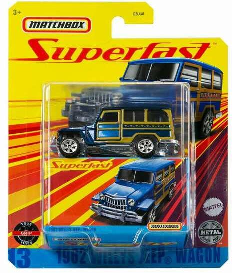 Matchbox - Superfast: 1962 Willys Jeep Wagon kisautó - Mattel Hivatalos magyarországi forgalmazótól. Leírás: A Willys Jeep hírnevét a II. világháborúban és a Vietnámi háborúban alapozta meg. Természetesen a gyár hamar felismerte a hétköznapi járművekben rejlő lehetőségeket és olyan nagyszerű modellekkel rukkolt elő, mint ez az 1962-es Willys Jeep Wagon, mely tökéletese