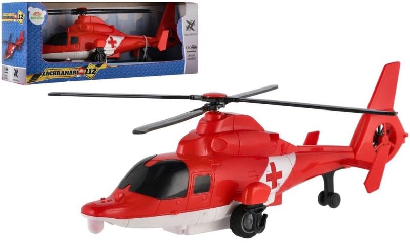 Műanyag mentőhelikopter minden kis mentőnek. Ezzel a gyönyörű piros helikopterrel a kis repülők nagyon jól fognak szórakozni. A helikopter körülbelül 20 cm méretű, és a légcsavar visszacsévélésére és forgatására szolgál. Csomag méretei: 25 x 9 x 6.5 cm. 3 éves korú gyermekek számára alkalmas.