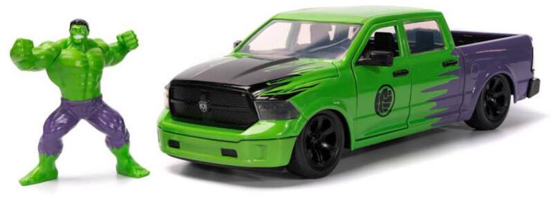 A Jada - Avengers - 2014 Ram 1500 fém autómodell és Hulk - 1:24 (253225029) minden Hulk rajongó kedvence lesz. A csomag tartalmazza a Hulk figurát és a hozzá passzoló 2014 Ram 1500 autót. A 21 cm-es fém játékautó valósághű modellje minden kisfiút és gyűjtőt elbűvöl. Az 1:24 méretarányú játékautó modellt első osztályú minőség jellemzi, ezért kiváló választás gy