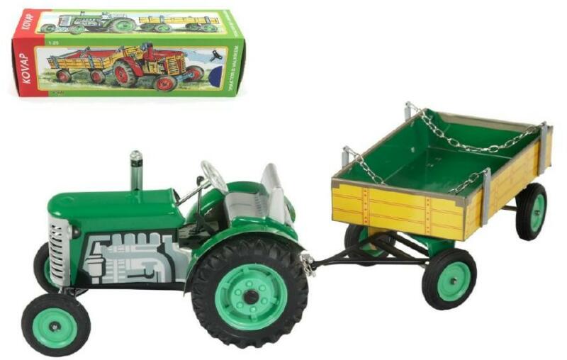Zöld Zetor traktor sárga platós kulccsal visszahúzható. Csomagolás: doboz Mérete: 28 cm Anyaga: fém