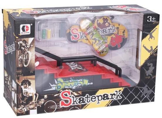 Fingerboard készlet lépcsőkkel. A lépcsők mérete 23,5x10x9,5 cm a fingerboard mérete 9,5 cm Tartalmazza: lépcső korláttal 1x teljes fingerboard 4 db pótkerekek 2 pótkulcs 2 pótnyomás csavarhúzó kulcs.