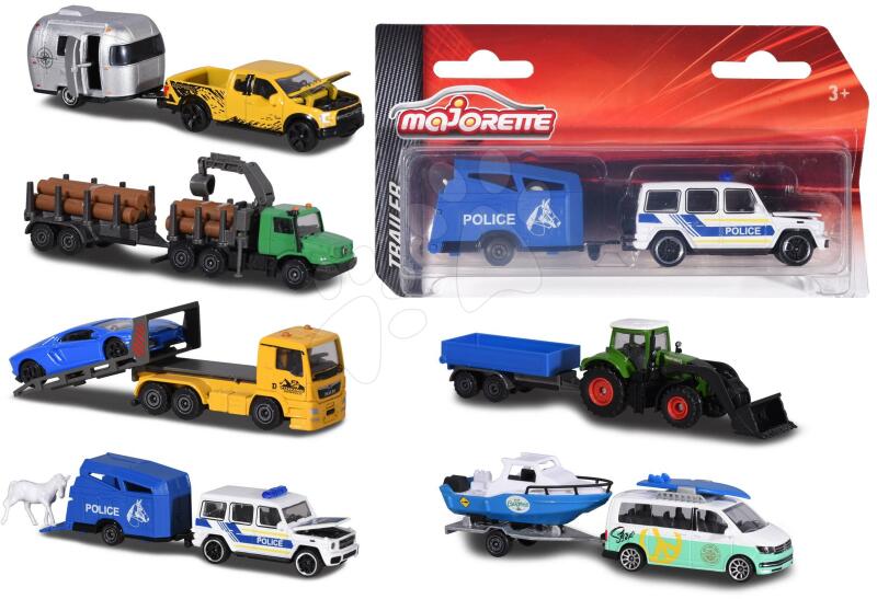 Kisautók utánfutóval a francia Majorette gyártótól gyerekeknek 3 éves kortól. A hivatalosan licenszelt minőségi játékautók valósághű élményt nyújtanak a gyerekeknek a szerepjátékok során. Kínálatunkban 6 különböző játékautót talál - sárga Ford Raptor terepjárót utánfutóval, zöld Mercedes vontató fával, sárga MAN vontató platóval és autóval, Mercedes ren