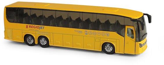 Ülj be a buszba, és irány a kaland! Ez az eredeti sárga RegioJet busz a Student Agency-től hátramenetben közlekedik, nyitható ajtókkal, fémtesttel és műanyag elemekkel rendelkezik. Méret: hosszúság 19 cm