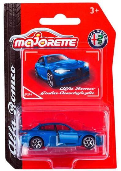 Éld át az olasz autózás élményét a Majorette autómodell - Alfa Romeo Edition prémium minőségű játékautójával. A doboz egy kék színű Gulia Quadrifoglio modellt rejt.