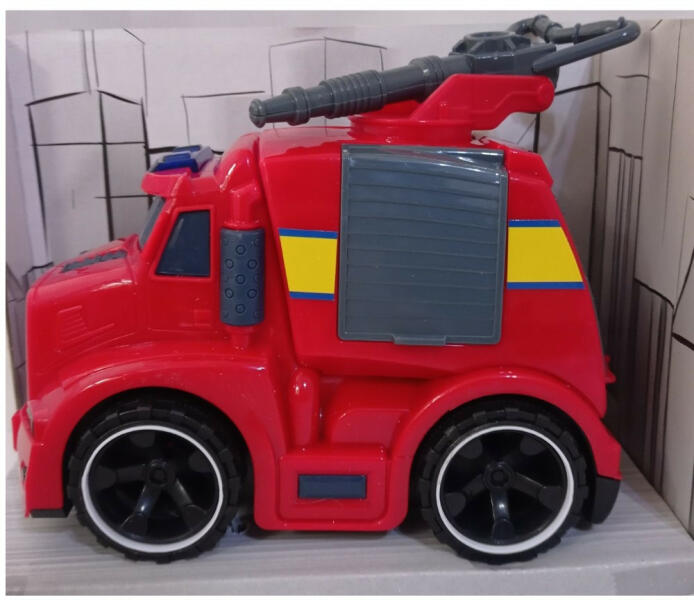 Hang- és fényeffektusok gombjai, lendkerék előrehajtás, "PRÓBÁLJON MEG" funkciót Használjon 3x "AG13" 1,5 V-os elemet. (Az elemeket a csomag tartalmazza – csak próbaüzemhez). Méretek szélessége 27 cm Magasság 13 cm Mélysége 19 cm Súlya 521 g 3+ életkor
