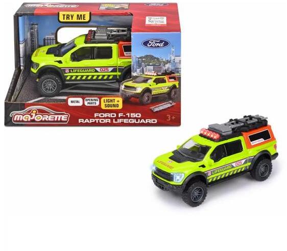 Ford F-150 Raptor Lifeguard mentőautó A hivatalosan licenszelt Ford mentőautó precízen kidolgozott részletekkel és valósághű külcsínnel büszkélkedhet. A fémkarosszériás autó gumikerekekkel, mozgatható részekkel és hordággyal rendelkezik és változatosabbá teszi a szerepjátékokat. A mentő autó hangokat ad ki és világít az élethűbb játék és a fantázia és képzel