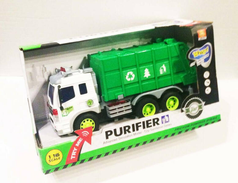 Élethű kukás autód elszállít minden koszt a környékről. Masszív kialakítású , elemmel működő - hangokat ad és világít . Mérete: 27 cm Anyaga: Műanyag