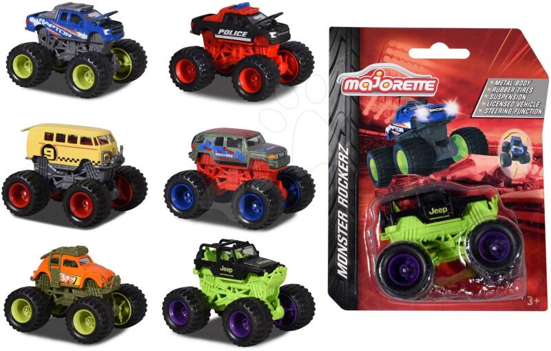 Kisautó Monster Rockerz a francia Majorette műhelyéből nagy örömet szerez a gyerkőcöknek, de főleg a kisfiúknak már 3 éves kortól, akik nagy kedvence a Monster kisautók. A licencelt Ford, Toyota, Volkswagen és Jeep autómodell márkák fémkarosszériával rendelkeznek és független gumikerekekkel vannak felszerelve, igy a kerekek oldalra is könnyen elfordulnak. Választani 6 mode