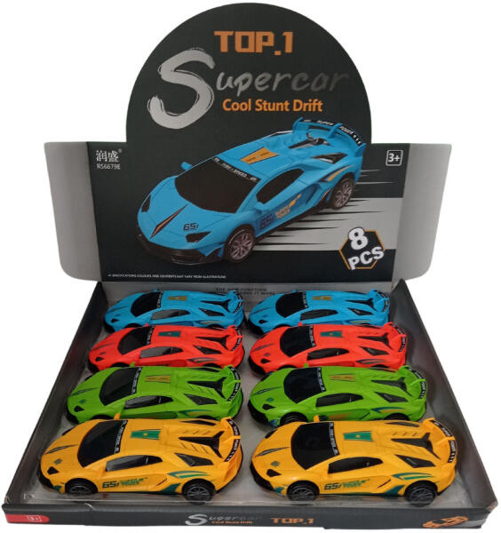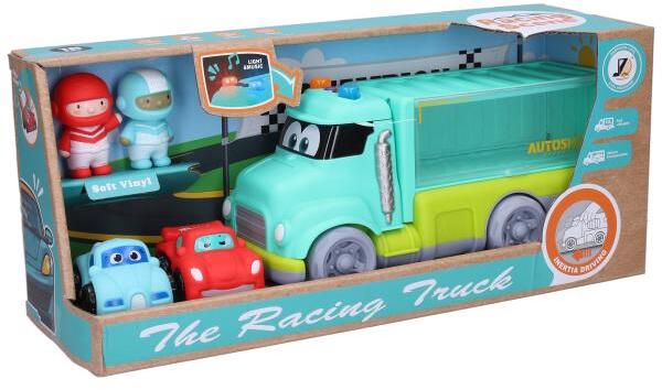 Versenyautó effektusokkal 4 db. Az autó mérete 26 cm. Fény- és hanghatások. Fékezési rendszer. 3xAG13 elem tartozék. Kor: 2+ Tartalmazza nagy autó, 2 kis autó 7 cm, 2 figura.