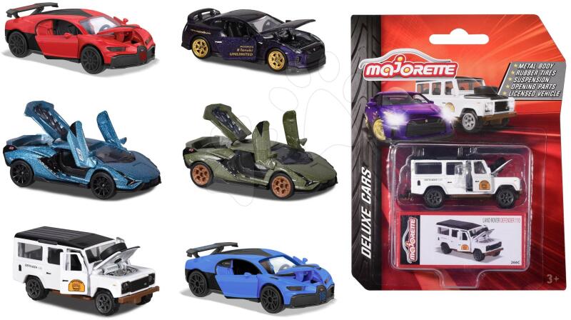 Luxus kisautó Deluxe Edition a francia Majorette márka műhelyéből kiváló választás minden gyerkőc részére már 3 éves kortól, akik kedvelik a gyors autók világát. Licencelt fém kisautók független gumikerekekkel és nyitható részekkel a valódi járgányok alapján lettek megalkotva, igy az autók rajongóit garantáltan lenyűgözik. Mindegyik modell hossza 7,5 cm és tartozi