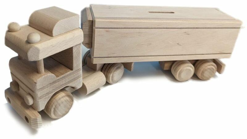 A pénztárgéppel ellátott teherautó tömör bükkfából készült, mely felületkezelt nincs. A tömör bükkfából készült játék több generáción át fog szolgálni. Minden precízen megmunkált, a fa csiszolt, a kerekek forgathatók. A pénztárgép hátsó része kihúzható, tartalma kivehető. Termék részletek: Csehországban készült mére tek: 33 x 7 x 12 cm (szé x ma x ma)