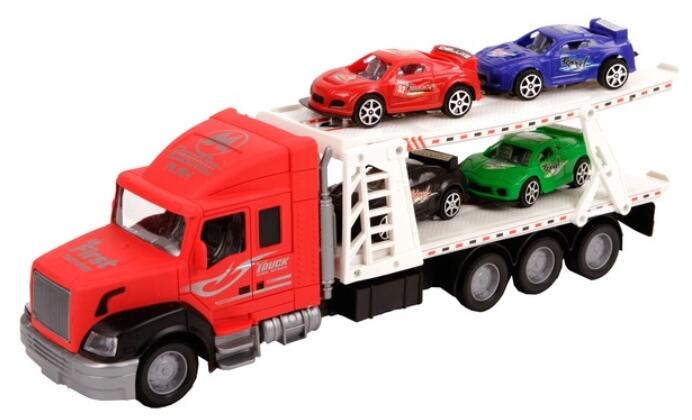 Az Autószállító kamion egy műanyagból készült, emeletes trélerrel felszerelt teherautó, 4 darab kisautóval. A rámpát le tudod dönteni, a kihúzható léceken az autók könnyen fel tudnak gurulni a helyükre. A kamion lendkerekes meghajtással készült, ha megtolod, magától fog előre gurulni hosszan. Az Autószállító kamion mérete: 36 cm, kisautók mérete: 8 cm. A játékok