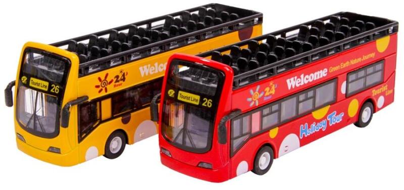 A Die-Cast élethű, 1/32 méretarányos fém busz modell. Az emeletes busz világít és hangot ad ki (LR1130 típusú gombelemmel működik, tartozék). A busz mérete:17 x 6 x 4 cm. A játékok külön kaphatóak. Választék: Sárga, Piros, Zöld > 3 éves kortól ajánlott