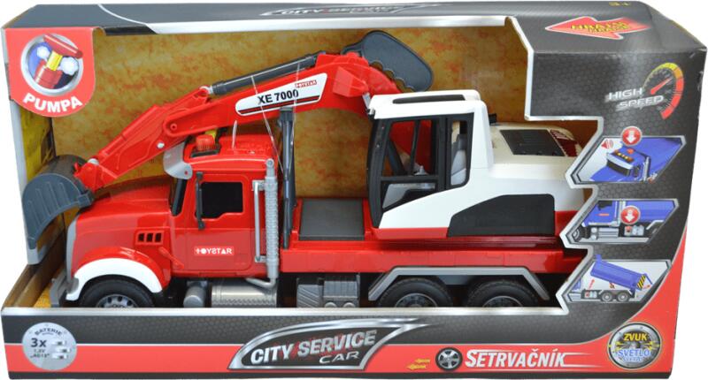 Fedezze fel a játék örömét, és ébressze fel a kalandozás szellemét termékkirályunkkal - CITY SERVICE CAR - 1:12 Kotrótargonca! Ez a kivételes műanyag kotrótargonca tökéletesen megtervezett és kiválóan felszerelt, hogy számtalan órányi szórakozást és játékot biztosítson egyedi hang- és fényeffektusaival. A kotrókarral ellátott forgó kabinnak köszönhetően a gyere